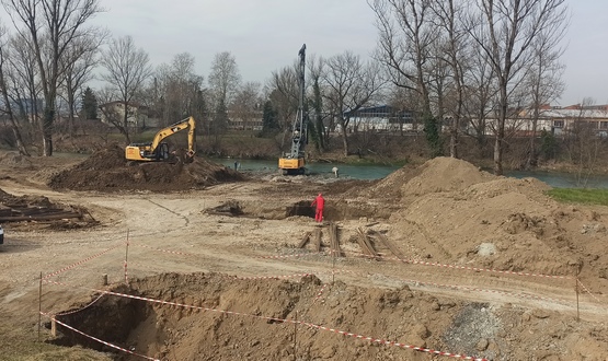 Извођач радова је извршио све припремне радове за изградњу на десној обали ријеке Врбас: изградња приступне саобраћајнице у дужини цца 500 m, формирање радног платоа градилишта и простора предвиђеног за привремено депоновање земљаног материјала из ископа, те постављање неопходних канцеларија и просторија за складиштење материјала и средстава рада.